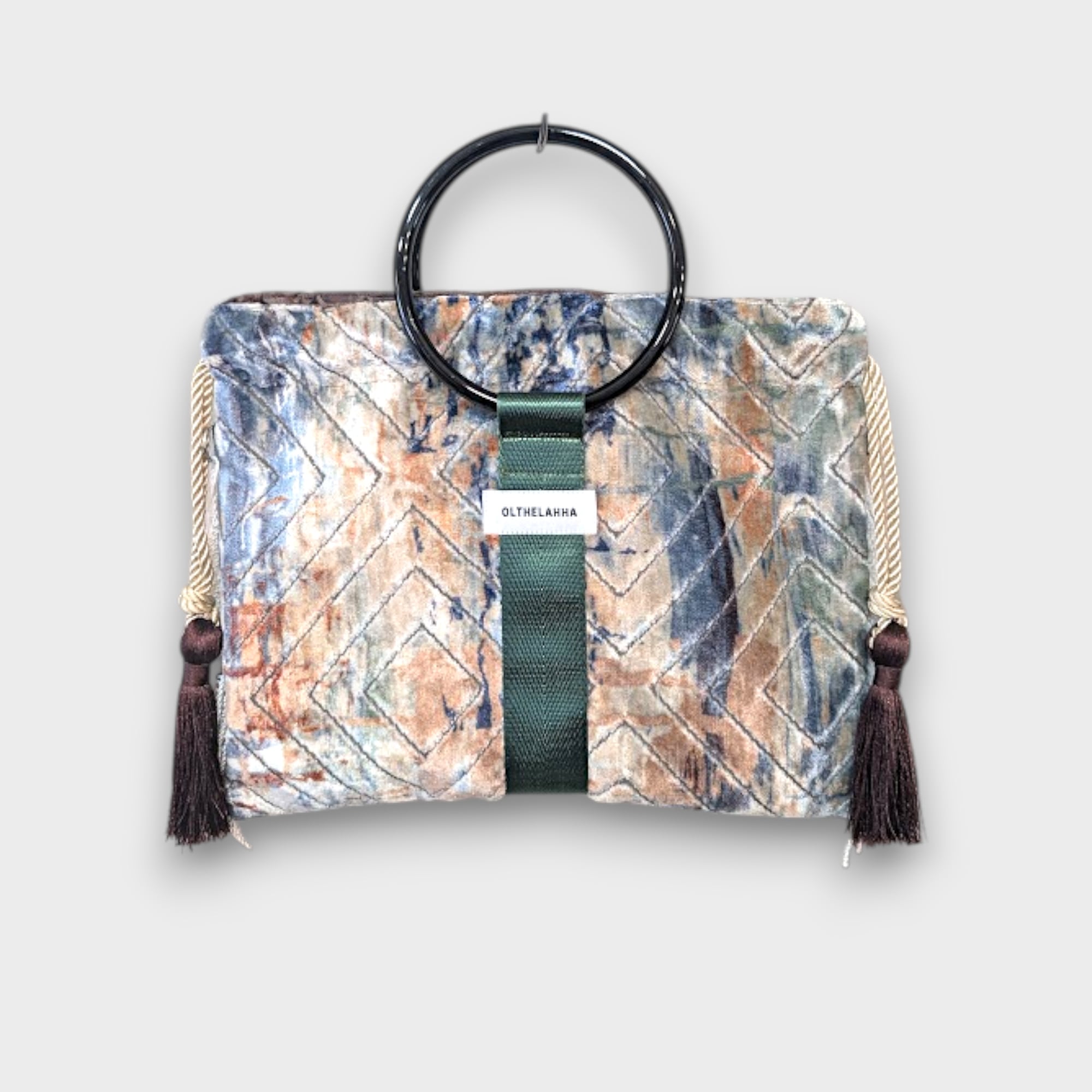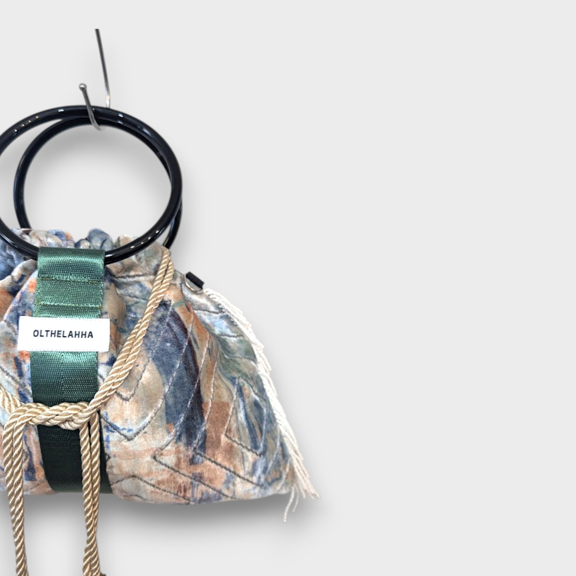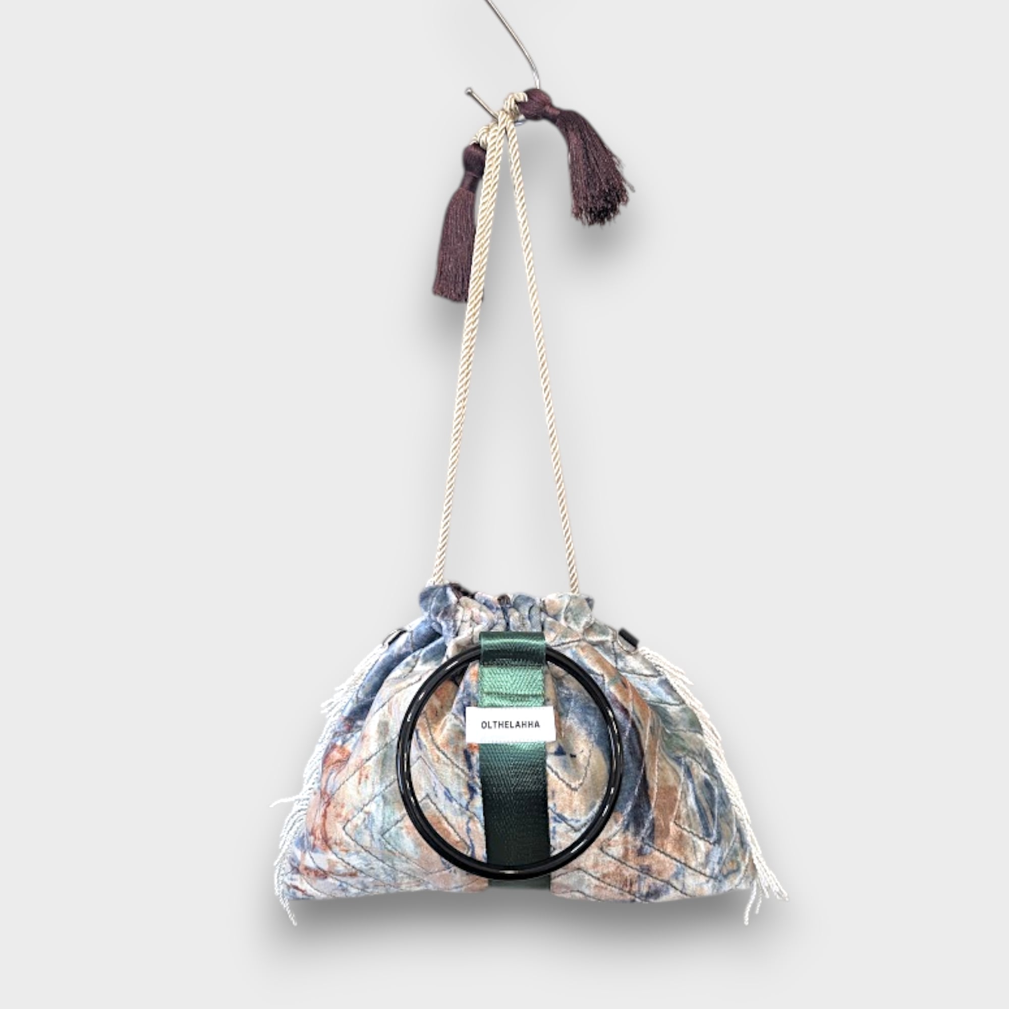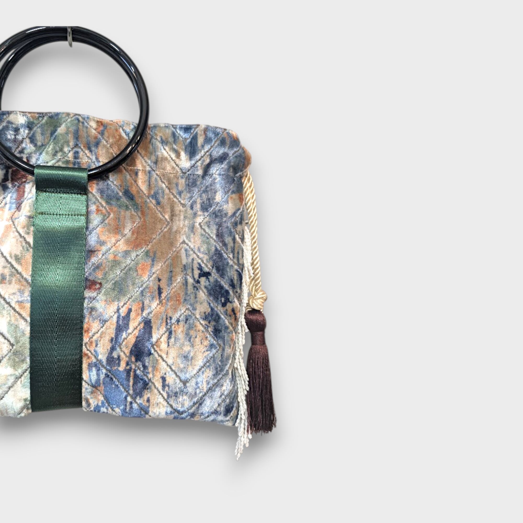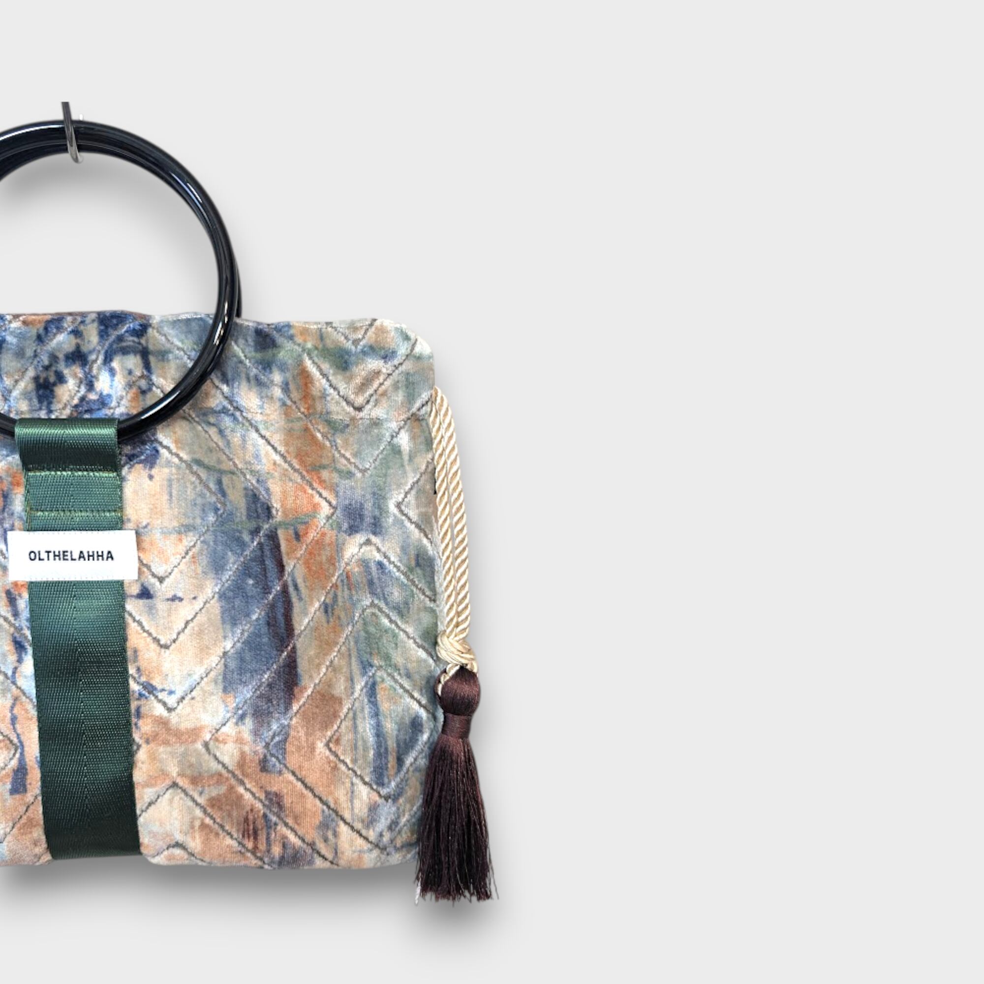 アートベルベットのリングタッセルバッグ。