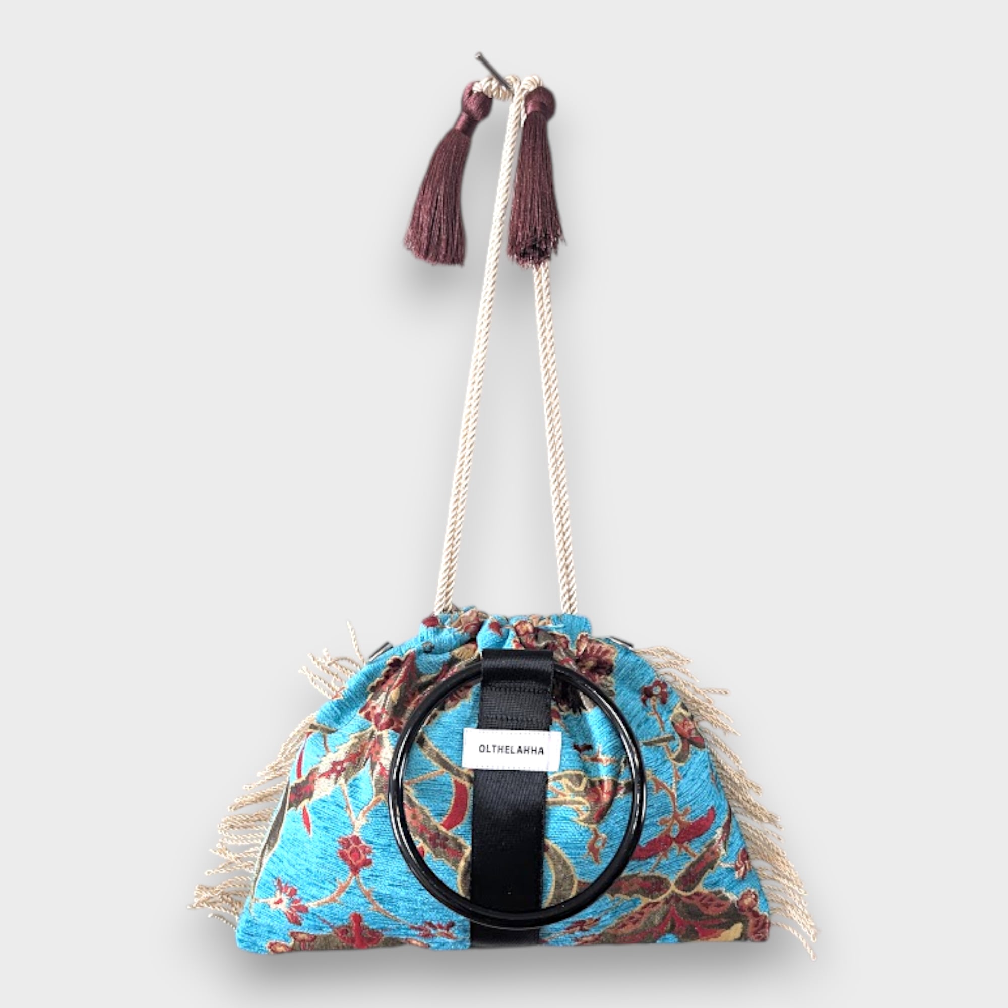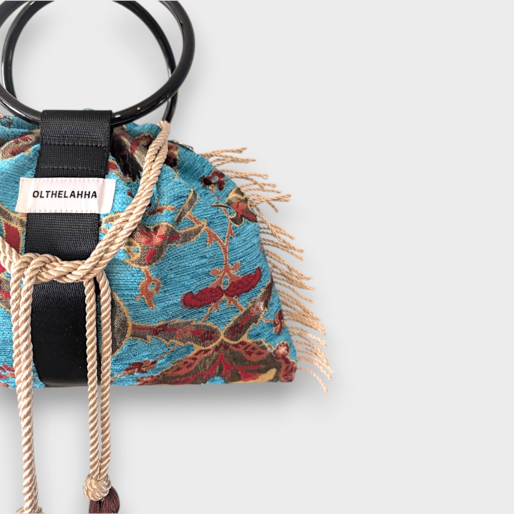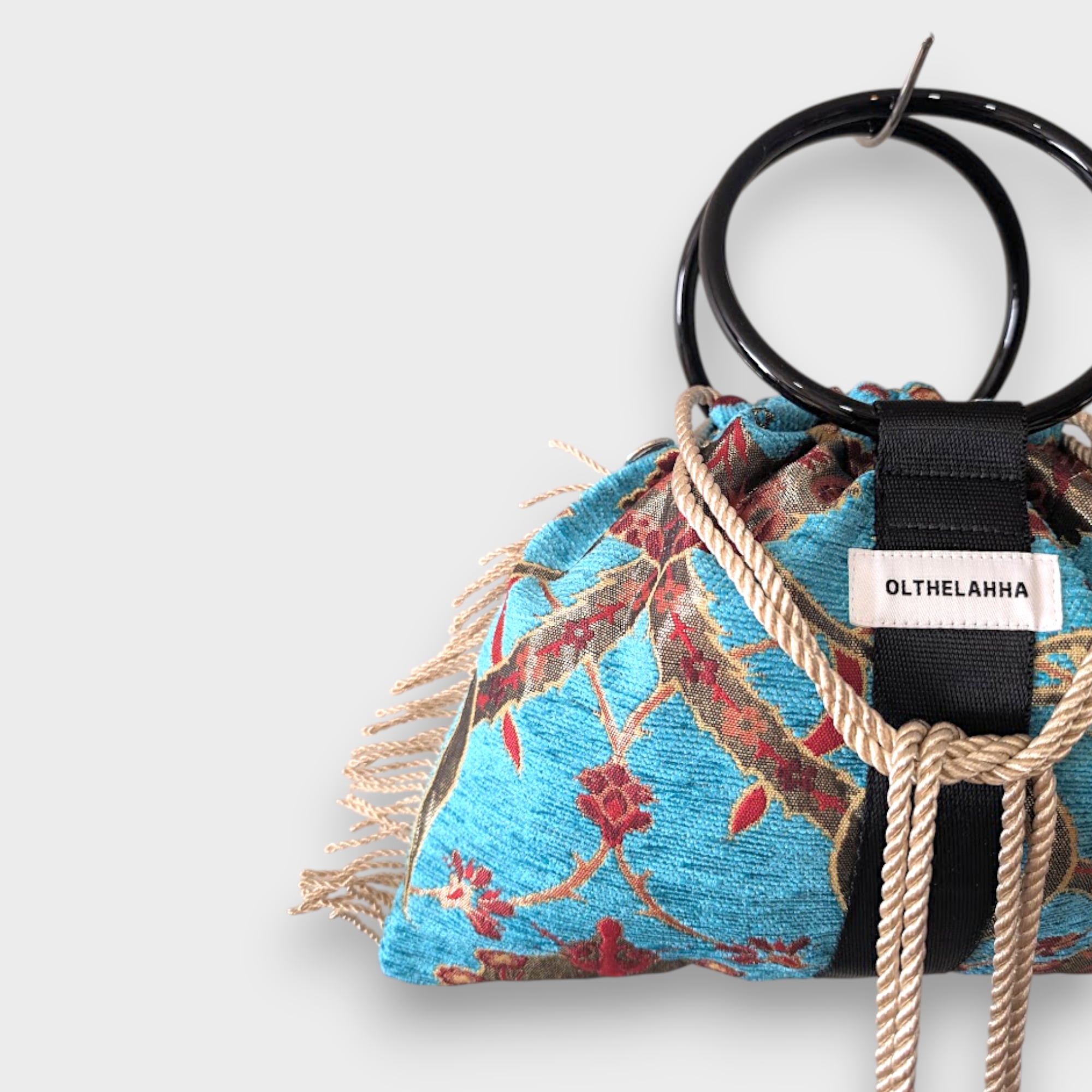 静かな存在感を放つ、ボタニカル柄のリングバッグはトルコ生地を使用