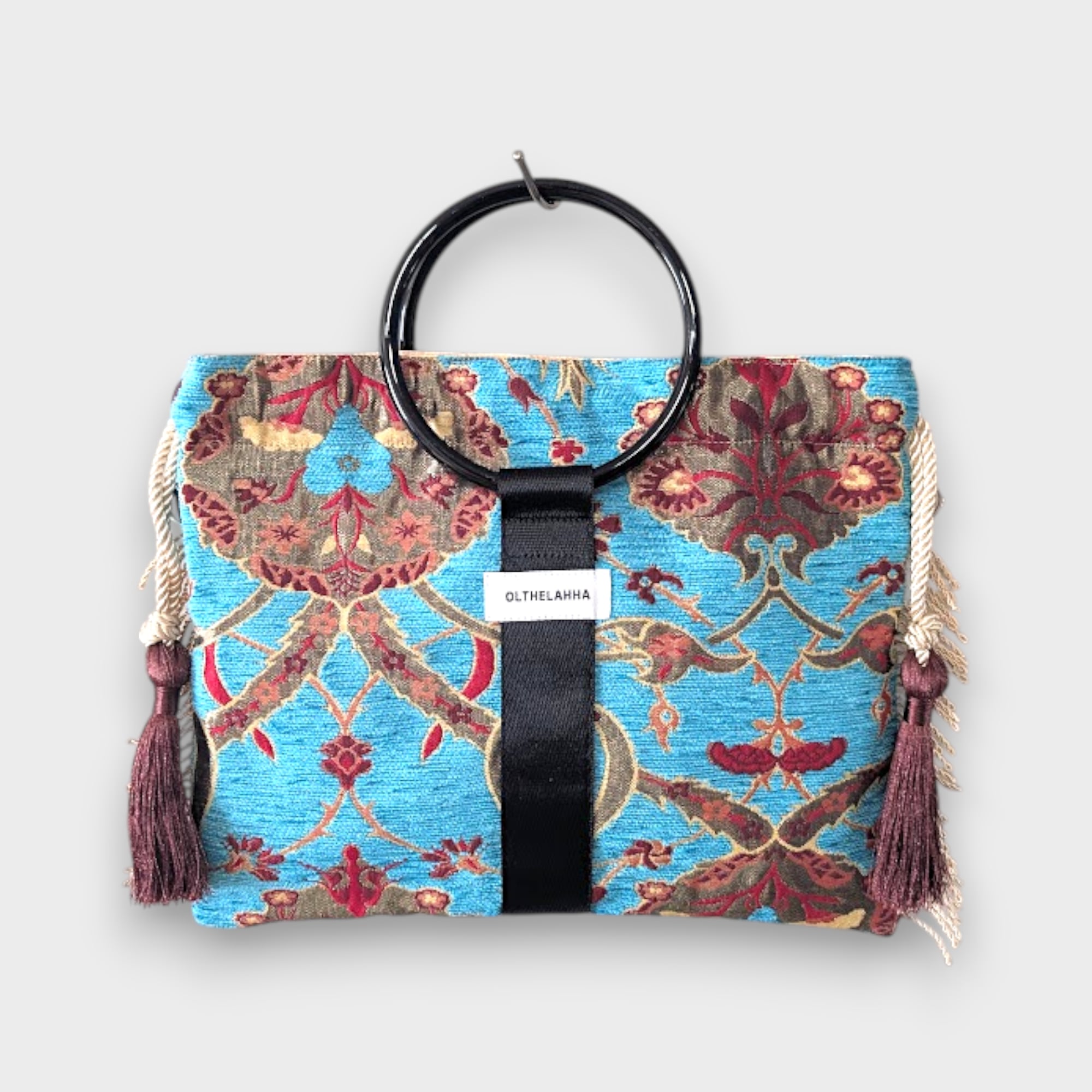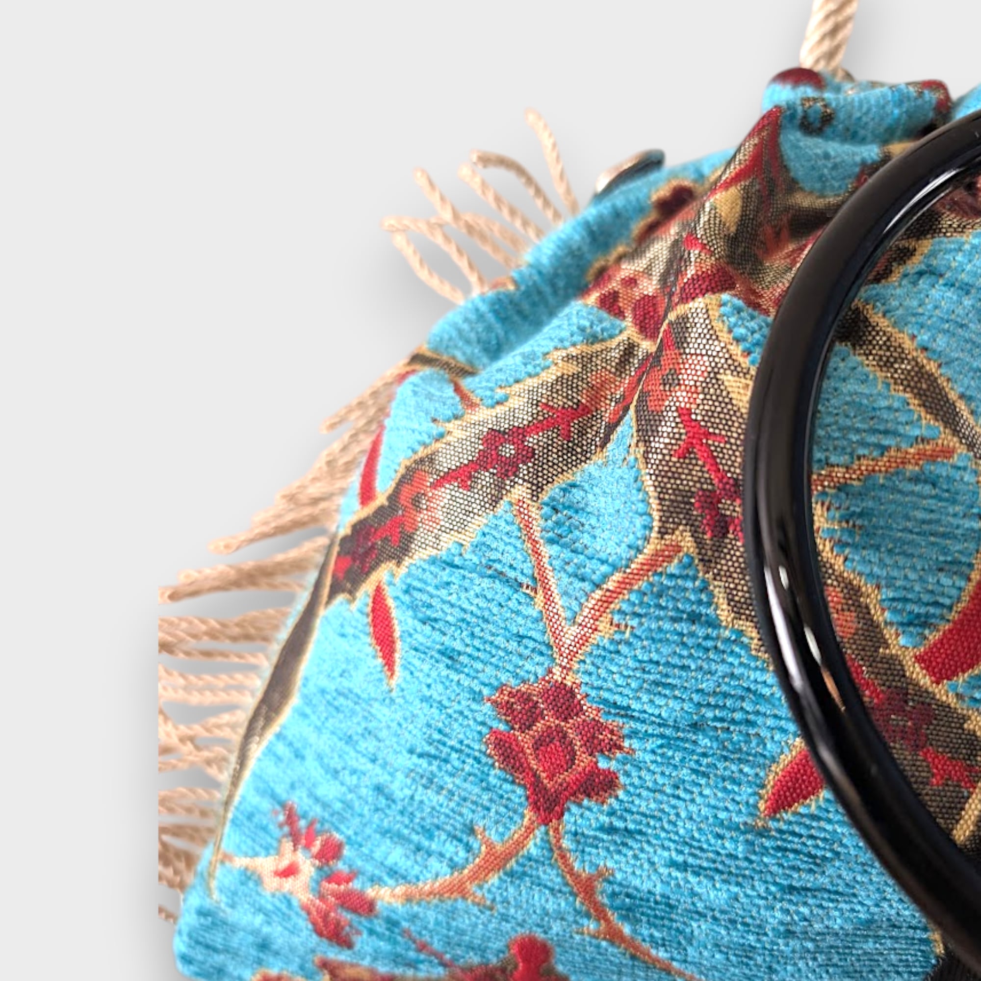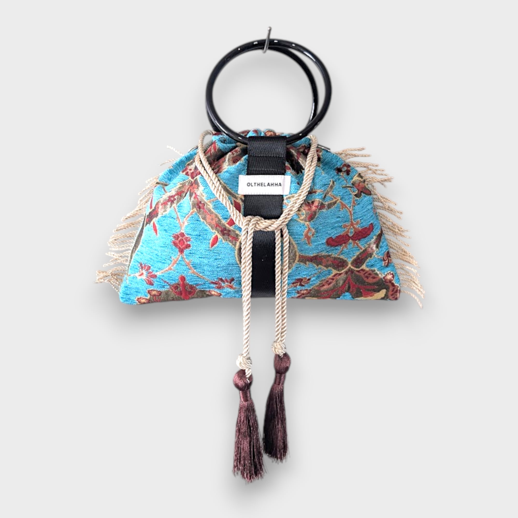 静かな存在感を放つ、ボタニカル柄のリングバッグはトルコ生地を使用
