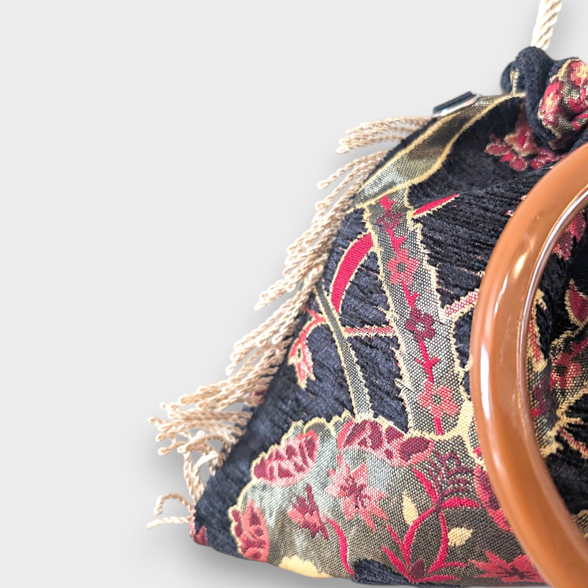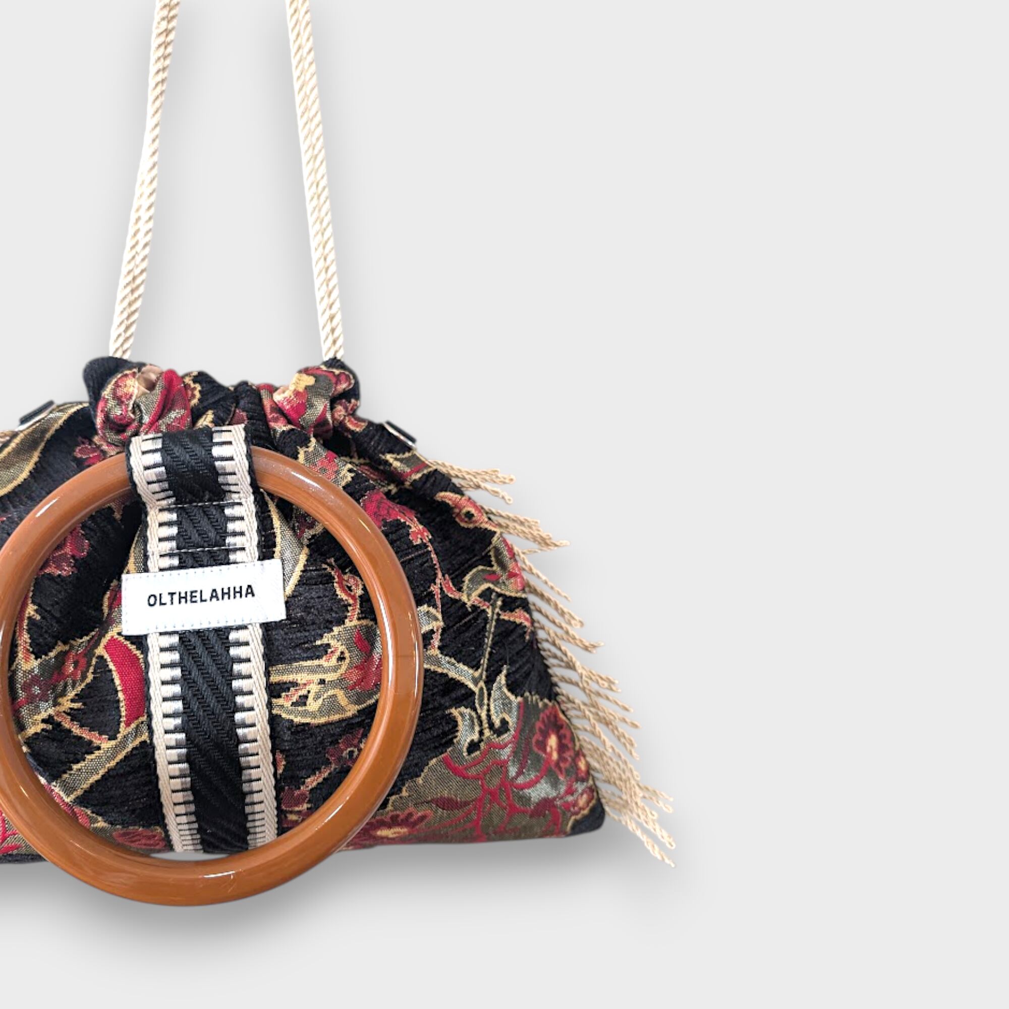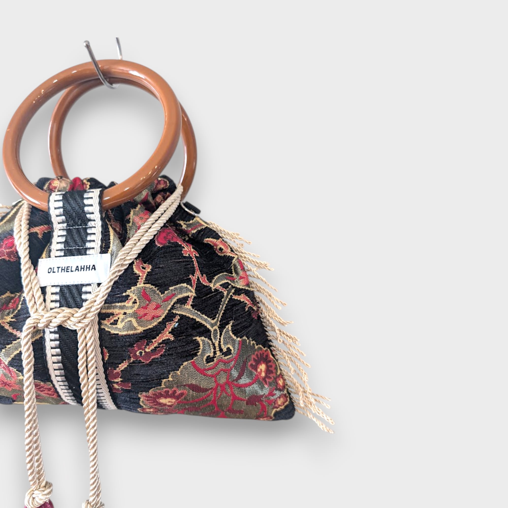 アートピースのようなリングタッセルバッグ。