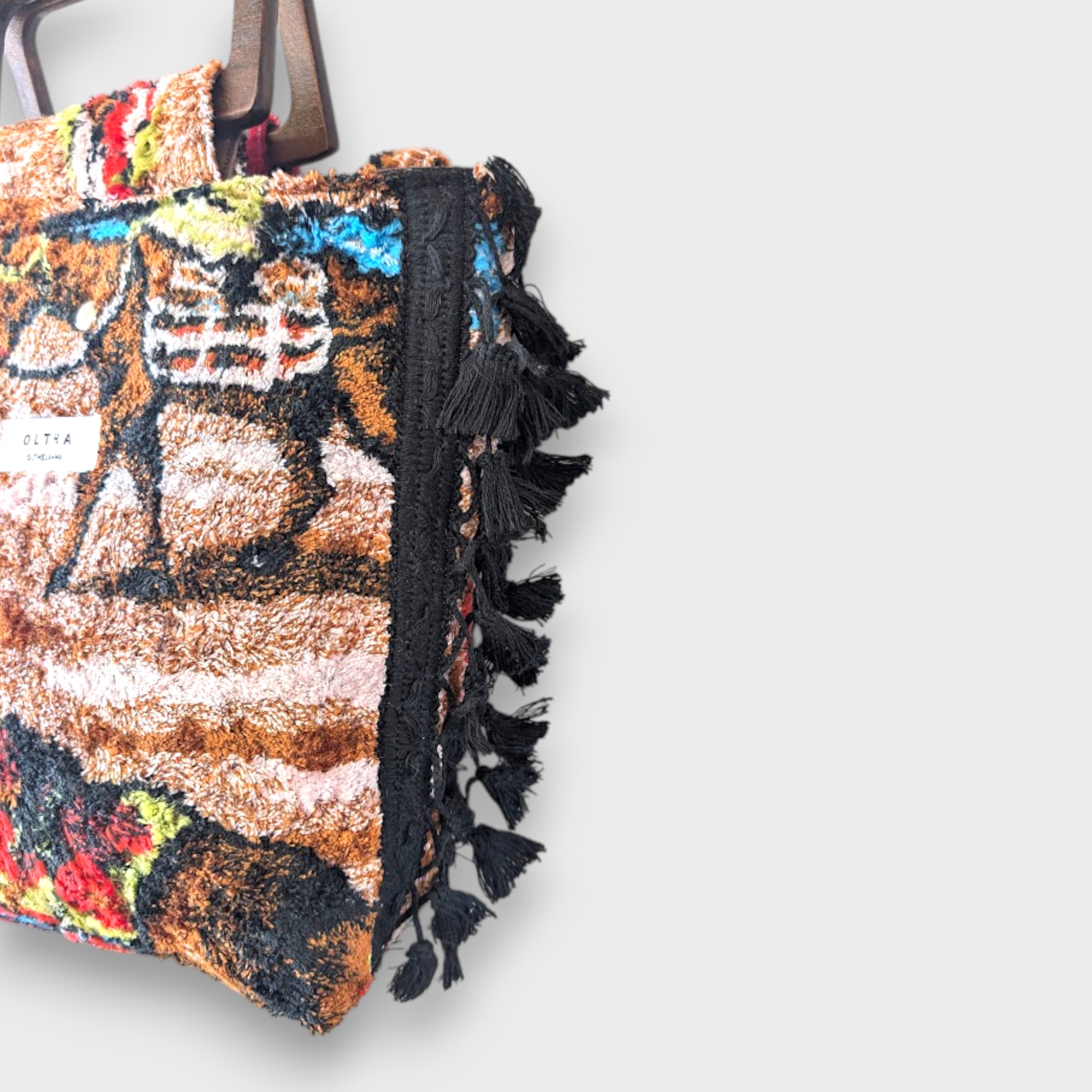 Vintage Tapestry Side Tassel Bag – Camel Scene