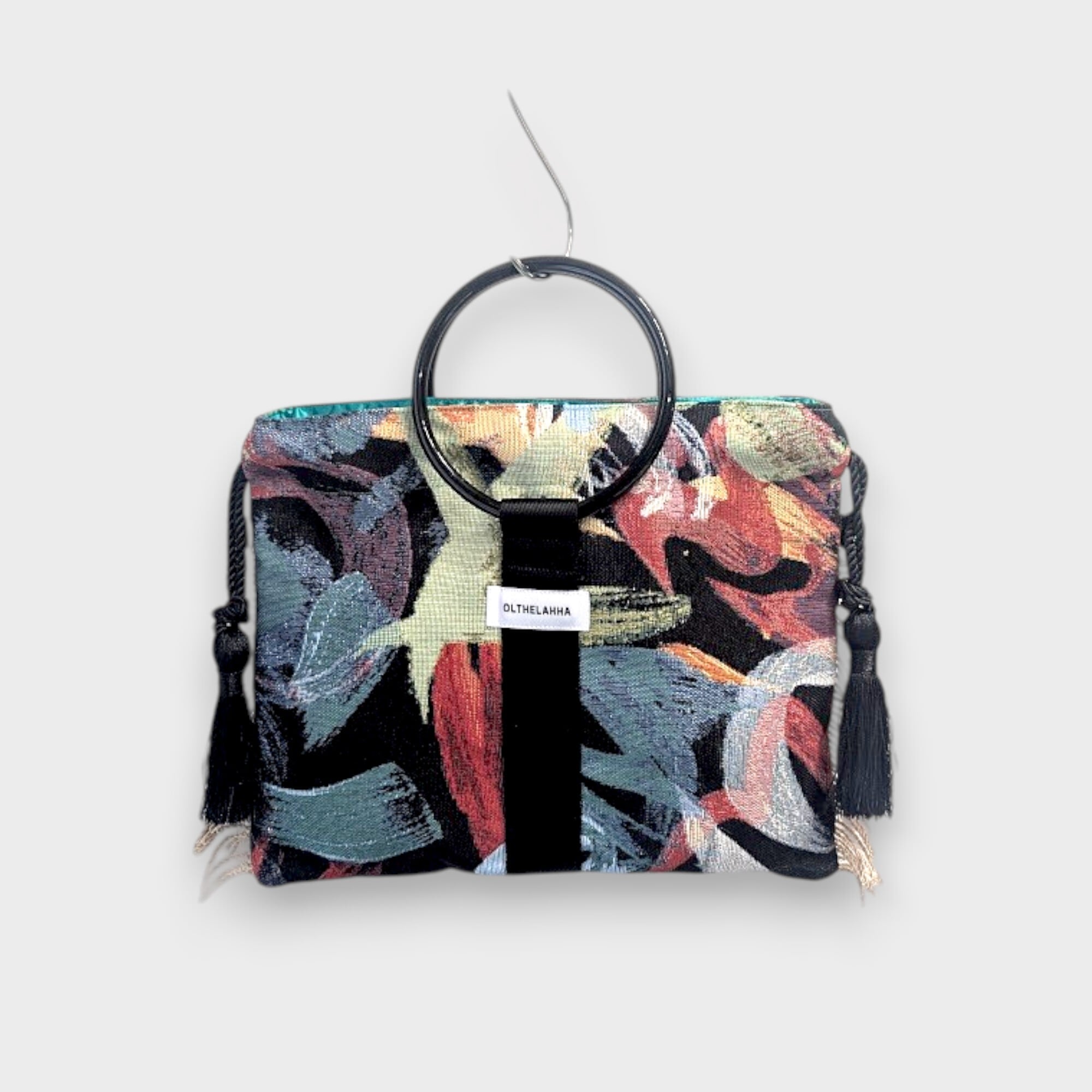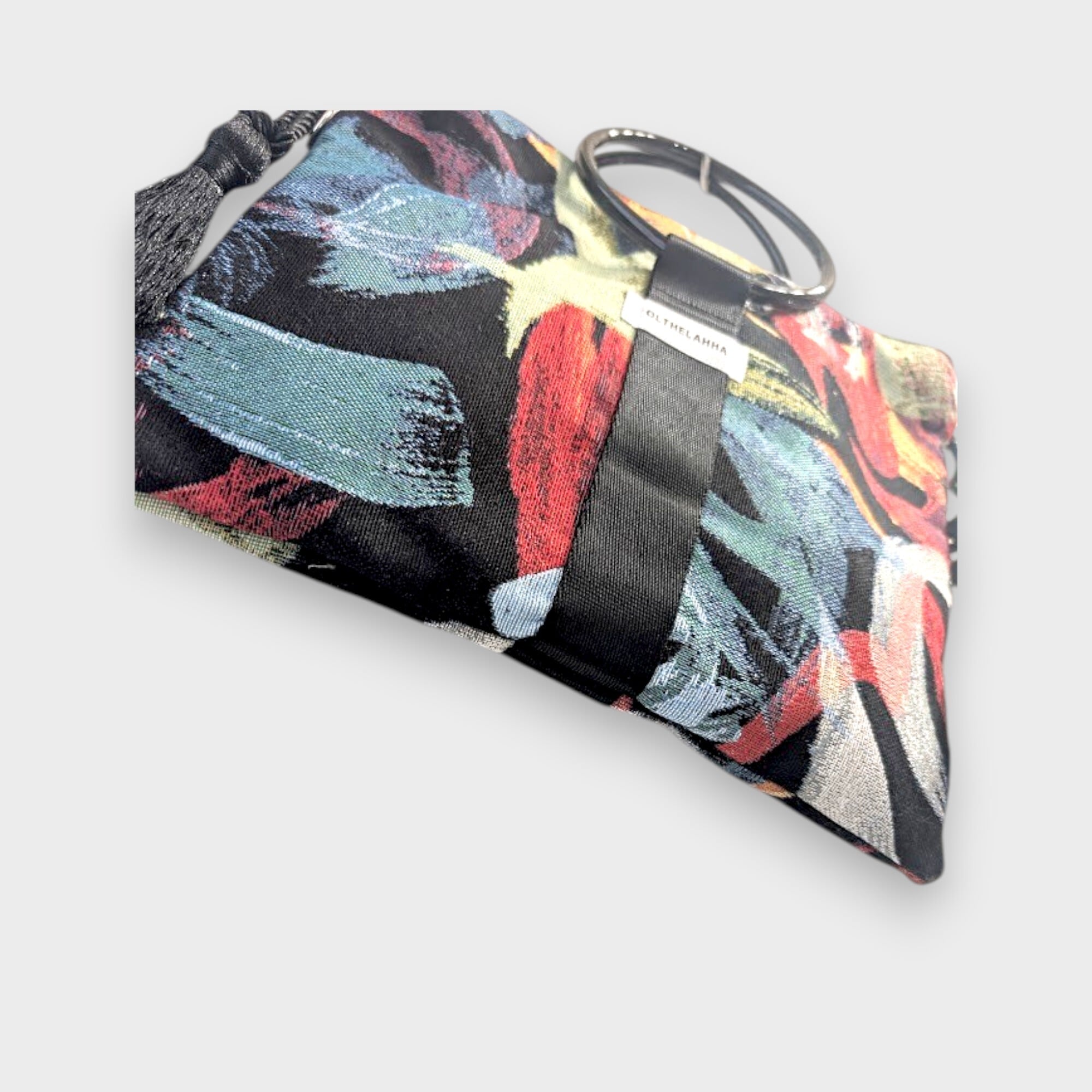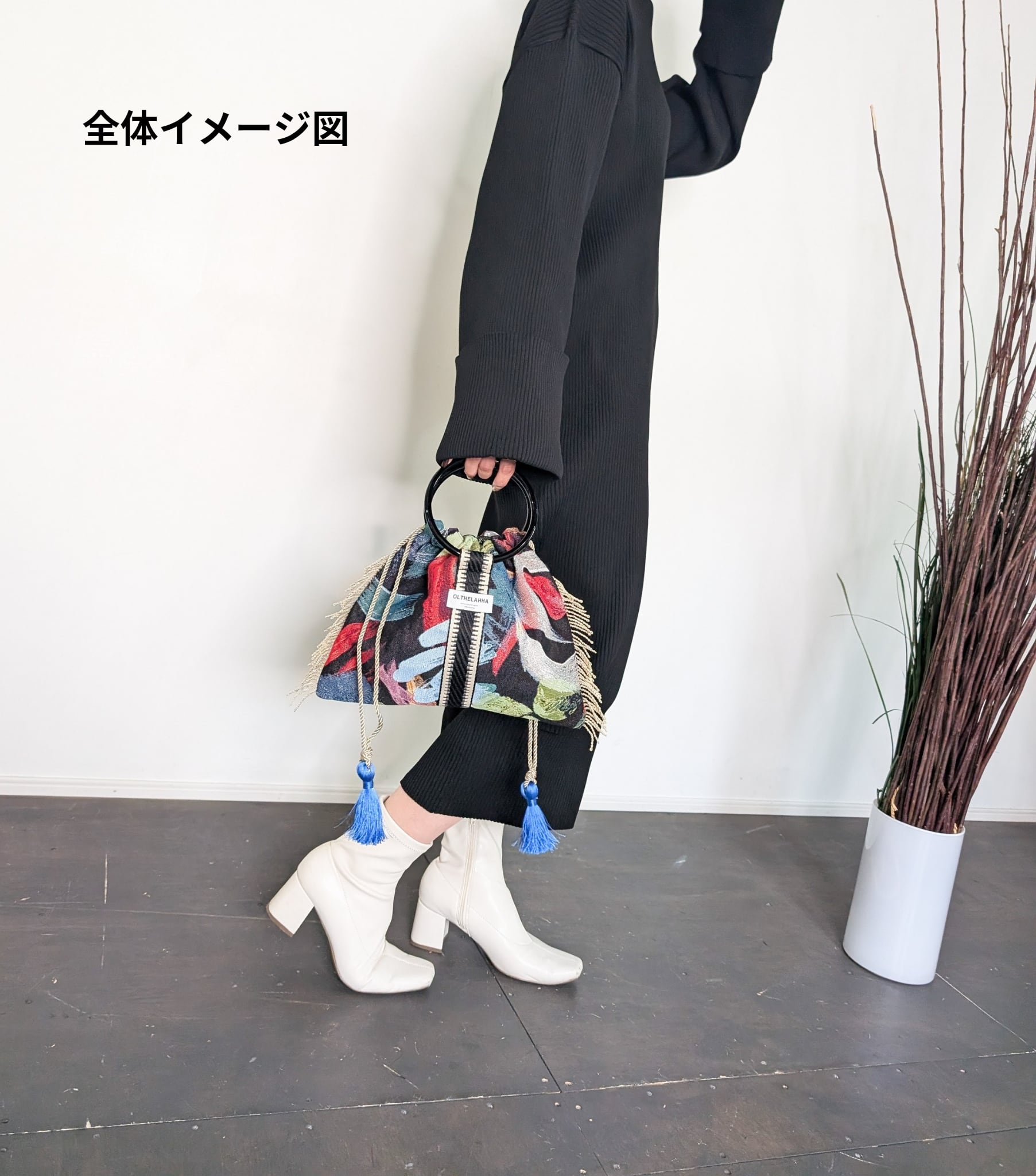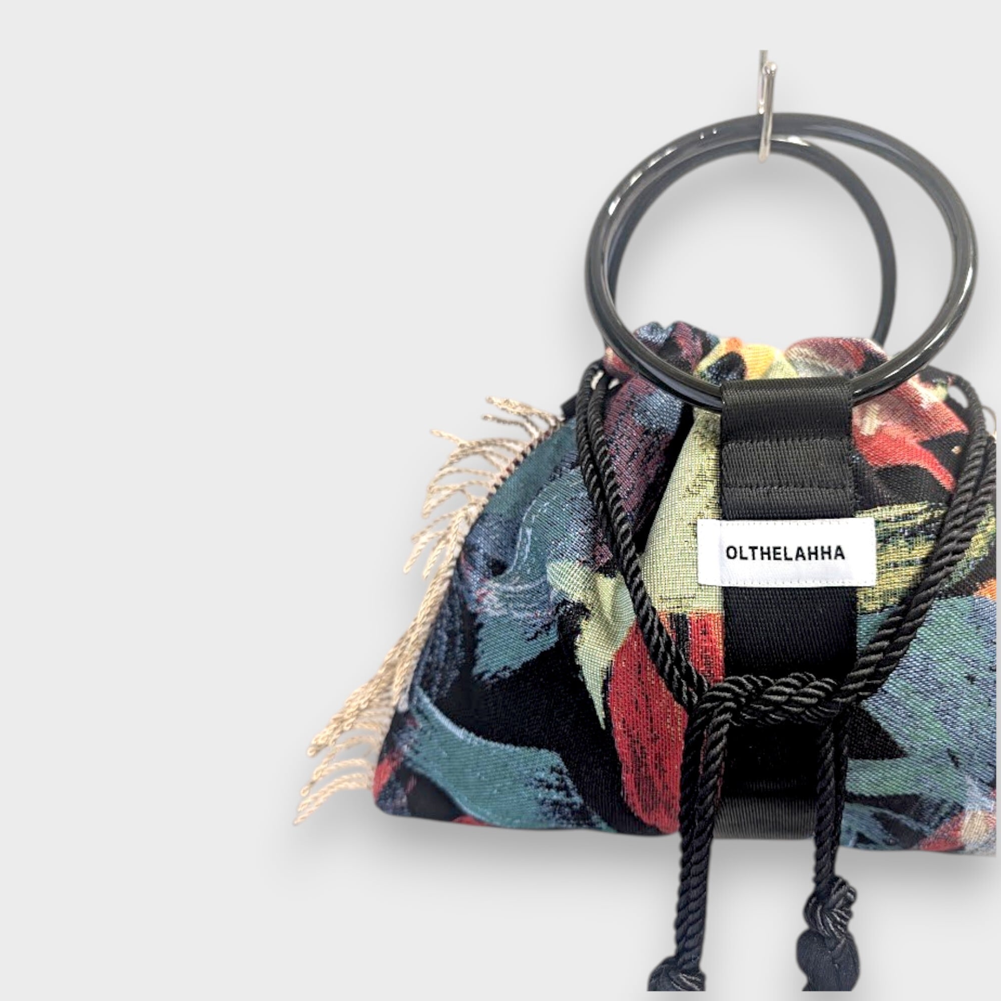 オランダのFABRICを使用したart漂うブラッシュアート模様が魅力的なリングタッセル巾着バッグになります。